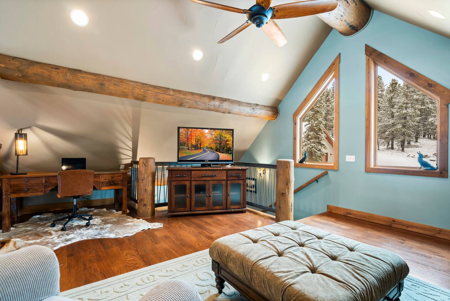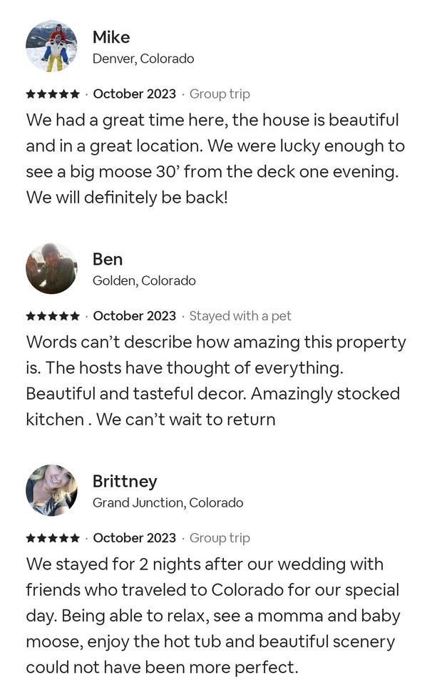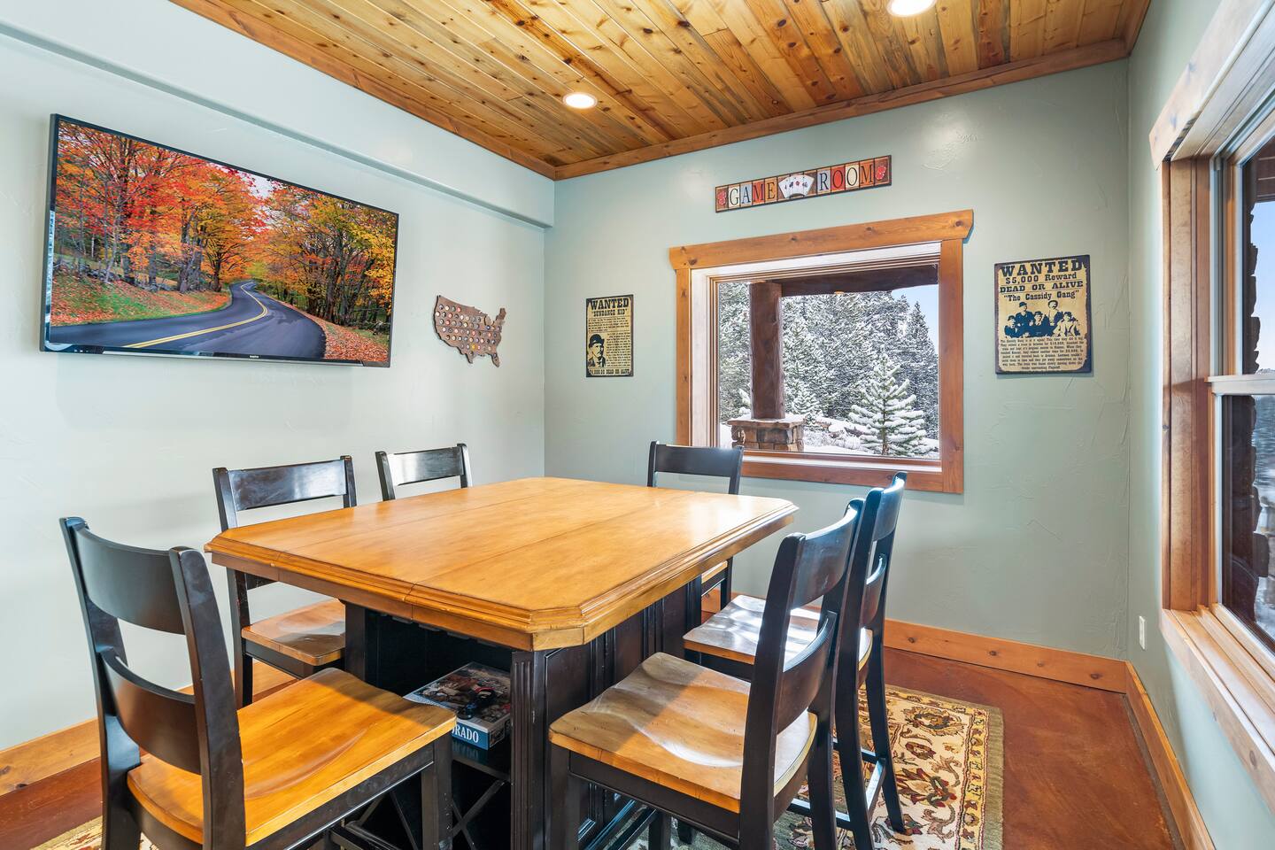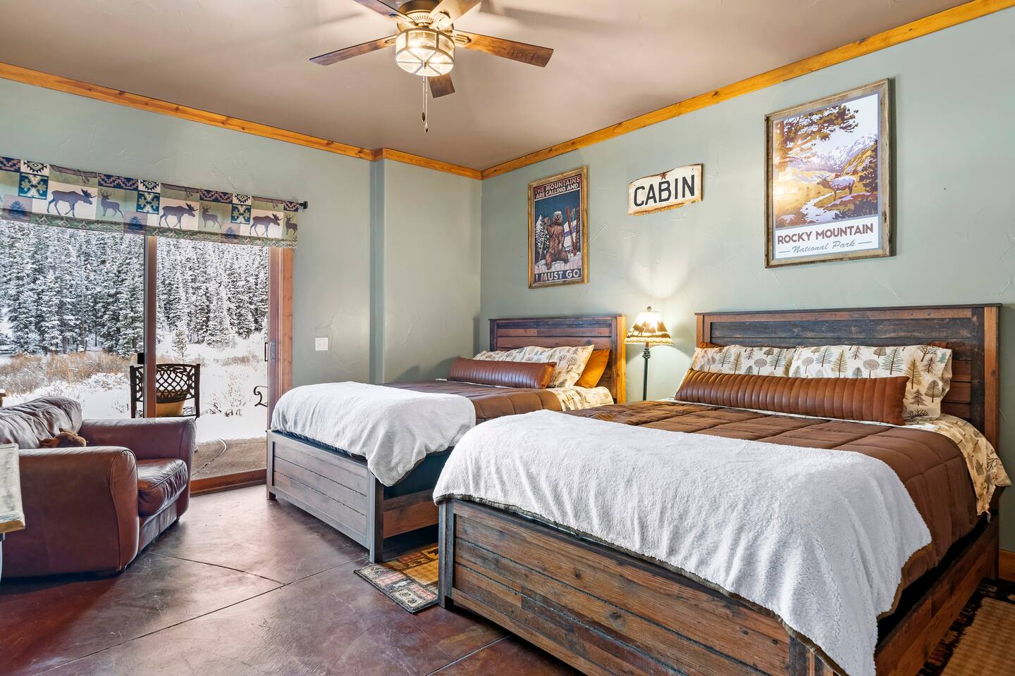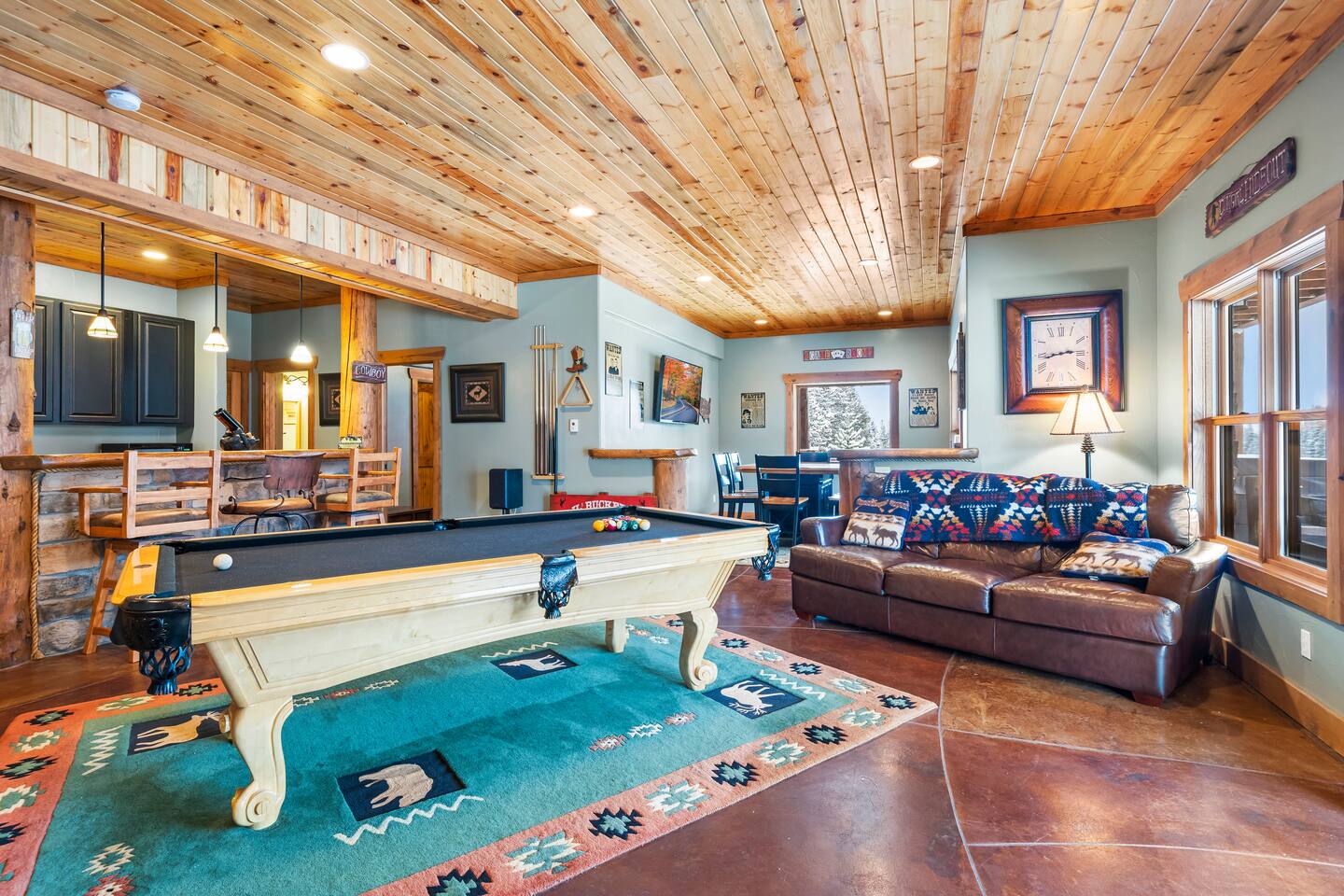 Just the house (3bed+loft)- Our main listing includes 2 additional bunk rooms above the garage & sleeps 16+. 10 acres of timber-lined property. Keep an eye out for Moose and wildlife by the creek in the back meadow. Relax after a day of hiking or skiing (at nearby Breckenridge, Copper, or Keystone) by soaking in the hot tub and gazing at the Milky Way. Watch the sunrise over Pikes Peak or take a trip to Mt. Princeton Hot Springs. Challenge your family to a game of Pool or build a puzzle.