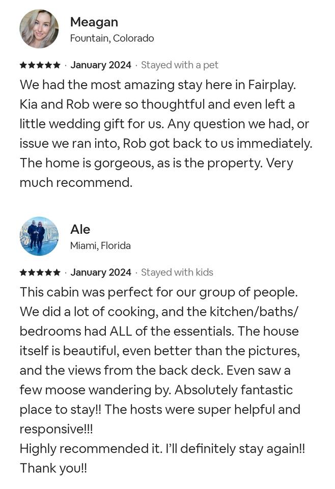 Our home is at 11,000 ft elevation. Even if you've been to the mountains frequently - sleeping at 11,000 ft is VERY different than 9,500 (Breckenridge) - you will need to prepare for altitude sickness. We provide an oxygen concentration machine, that we recommend everyone uses upon arrival for 5-10 mins. All guests must have an AWD vehicle to access the home Nov-April, no refunds given if you get stuck in the snow. Our driveway is plowed if more than 6" accumulate overnight. If snow starts later in the day, you will not be plowed until the following day. It's $200 additional for an "emergency plow". We recommend a private rental with TURO - if you rent through a rental company, you risk not getting an AWD vehicle and not being able to access the home. Pet fee of $150 applied for up to 2 pets/stay. Additional pets must be approved and will be $50/pet additional. We are in a rural area, despite our best efforts you may have an occasional pest sneak in.