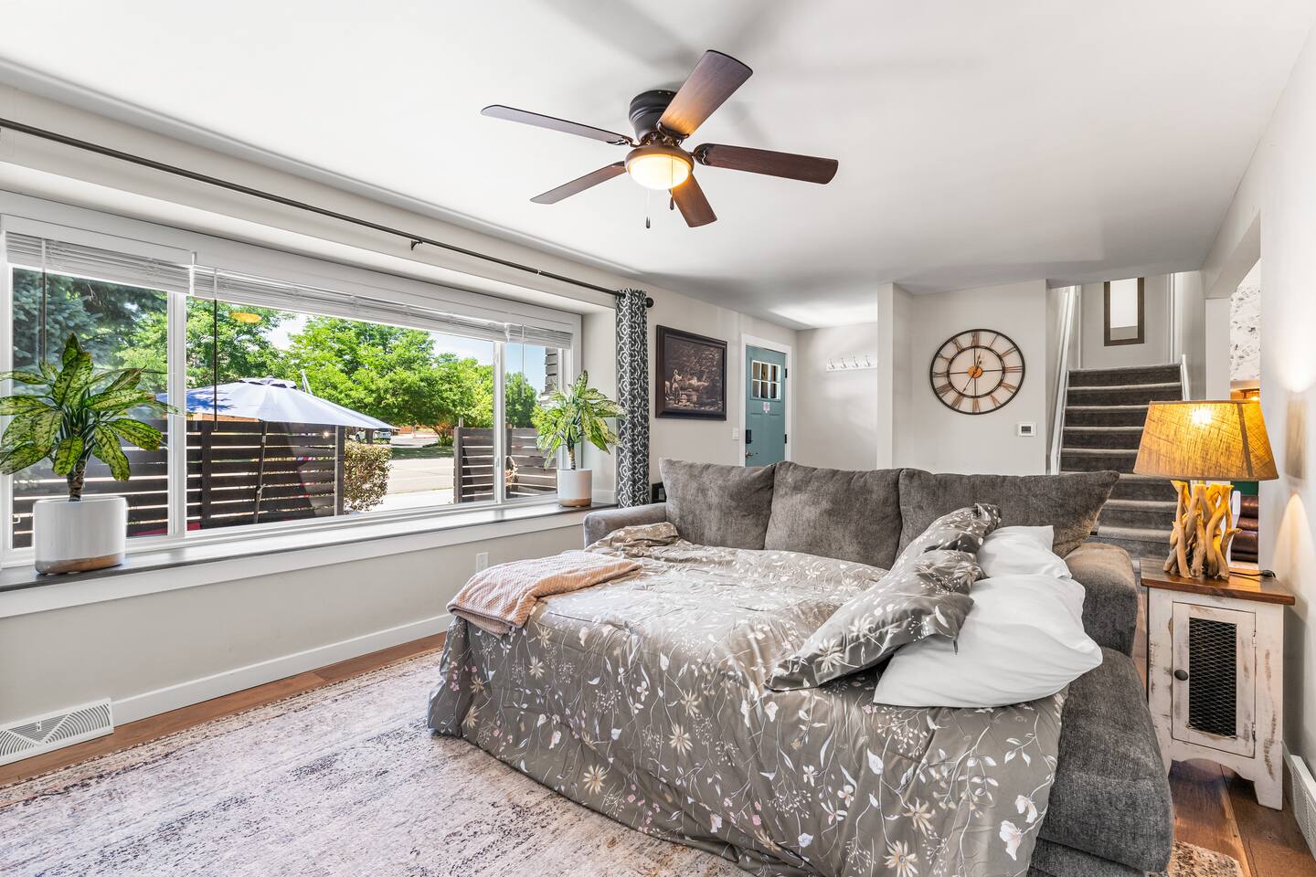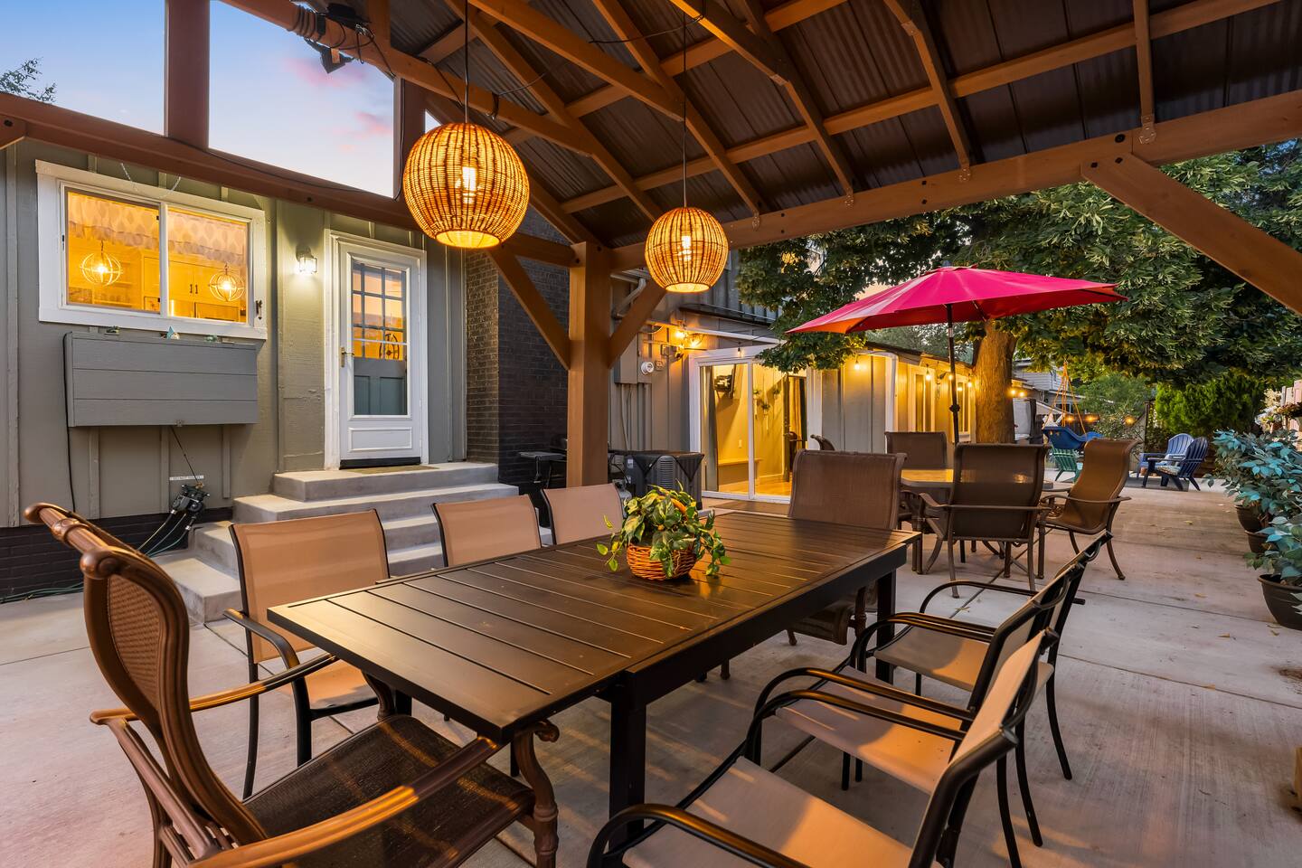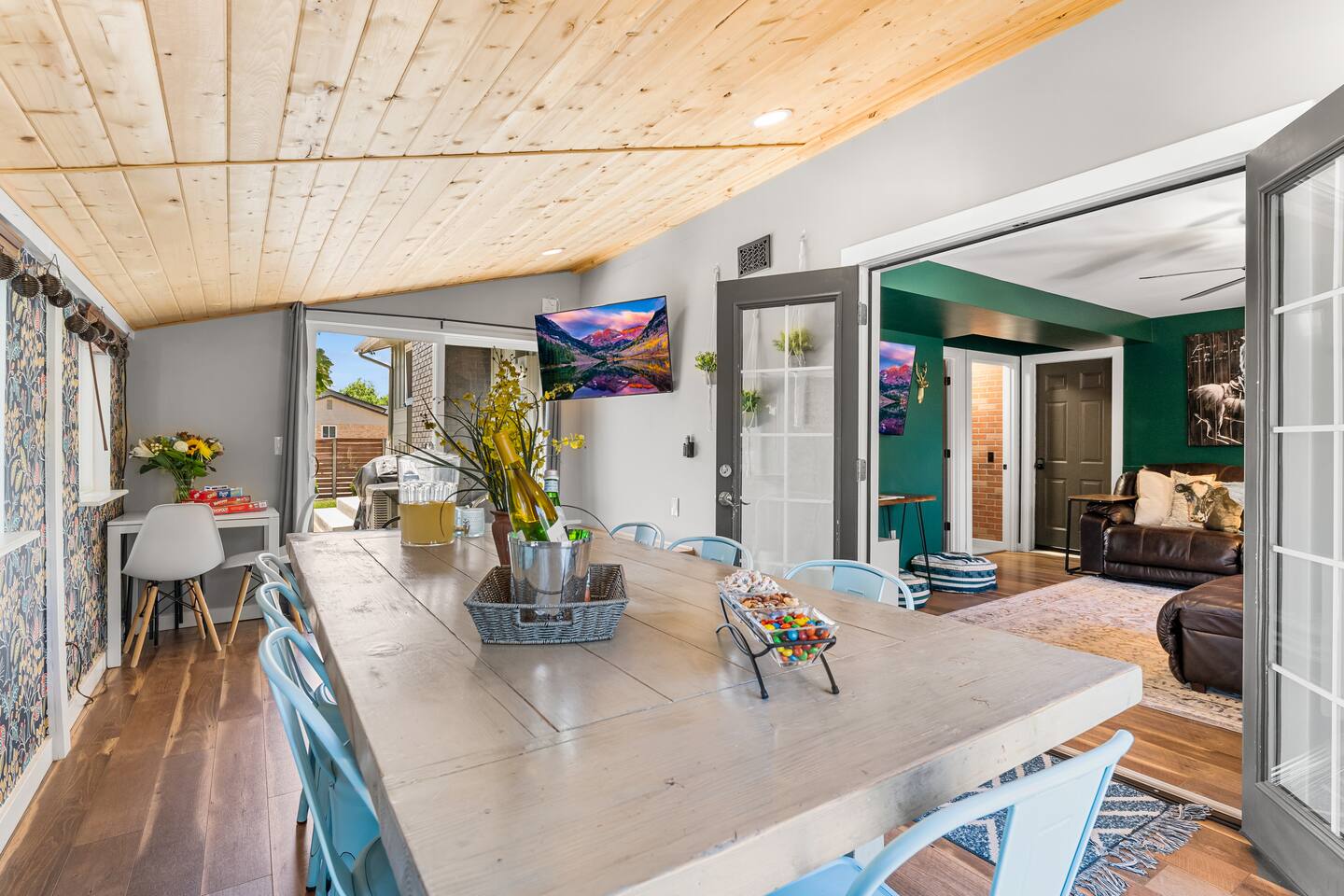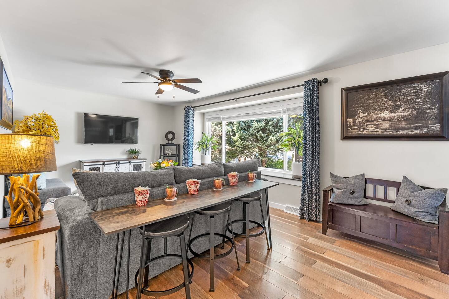 Welcome to The Rocky Mountain Retreat. We wanted our house to feel like home: Comfortable beds, plenty of towels, tp, & toiletries. The kitchen is fully stocked: spices, oil, ketchup, coffee/creamer, dishes and even outdoor cups for the hot tub or a competitive game of cornhole. All TV's are smart TV's. If you want to use your personal Hulu or Disney+ accounts feel free (just be sure to log out when you leave). MAIN LIVING ROOM: 55in Roku TV Full Sofa set -Ottoman can be added for sleeping (bedding provided) Board games KITCHEN/DINING: Condiments, Spices, and Cooking Oils. Stainless Steel Appliances Crock pots, serving dishes, small appliances etc. Keurig Machine, Drip Coffee Machine, & Tea DEN (2nd Living Room): 55 in Roku TV Sectional couch with chaise & 2 recliners *air mattress can be used in this room SUNROOM: Roku TV Large Dining Table - seats 8 MASTER BEDROOM: King size bed Smart TV Dedicated Workspace Ensuite bathroom with dual vanity Queen air mattress & bedding Pack and play crib & bedding SECOND BEDROOM: 2 Double Beds Ensuite bathroom/shower Smart TV THIRD BEDROOM: Queen size bed FOURTH BEDROOM Full size daybed Twin Trundle with bedding OUTDOORS: Two Propane Fire Pits Gas Bbq Grill Corn Hole Set