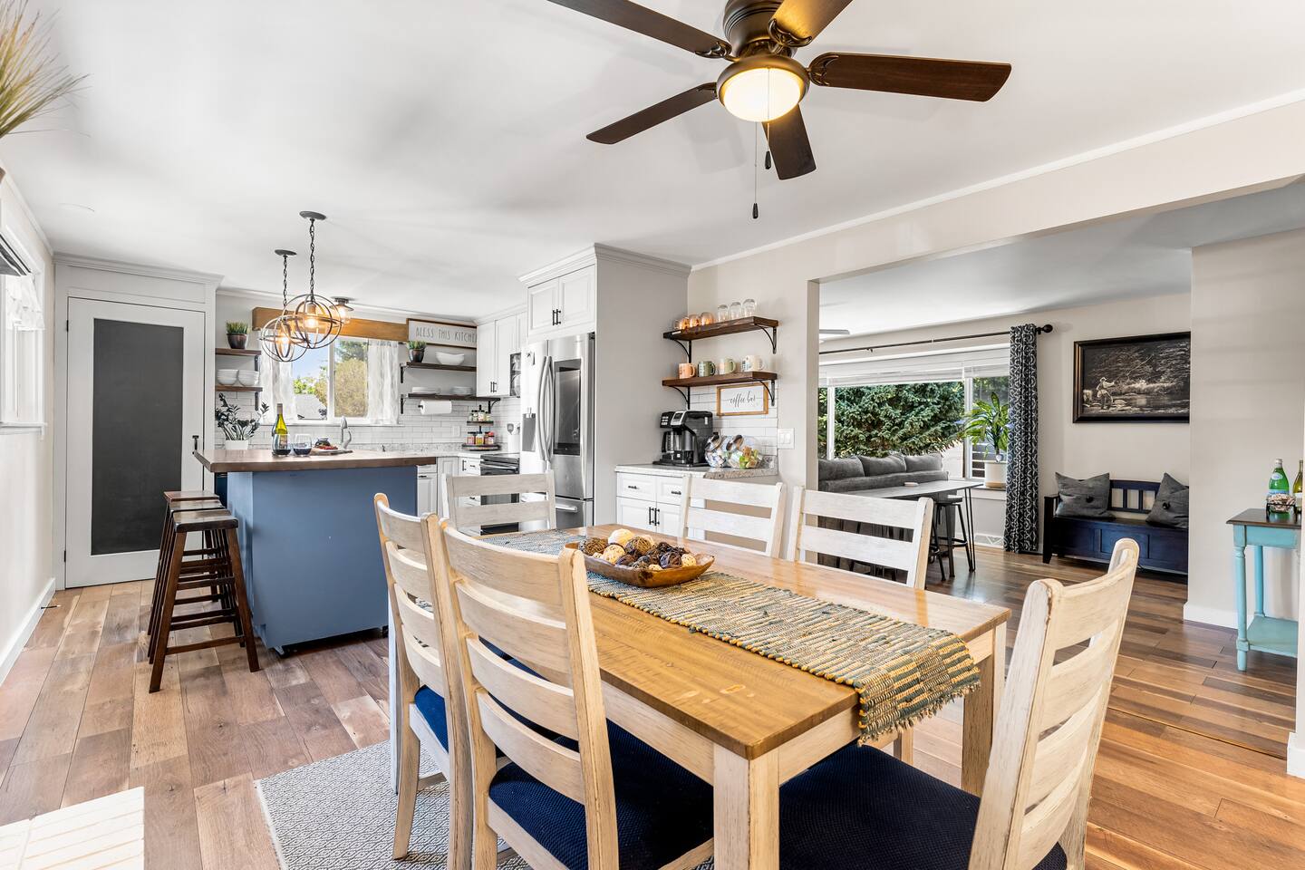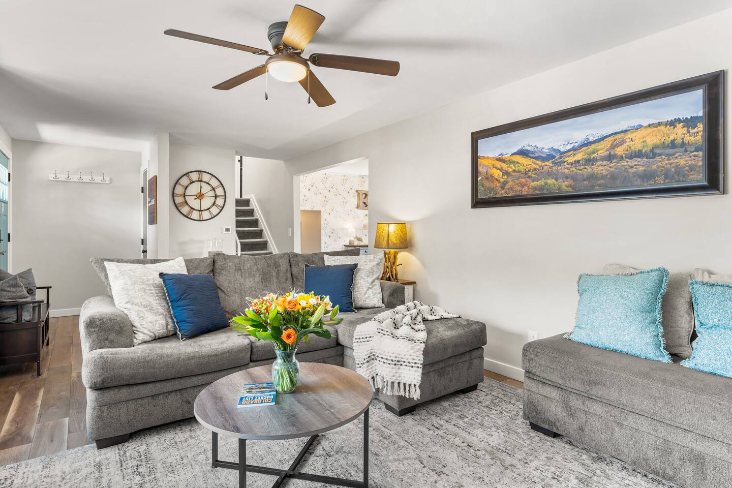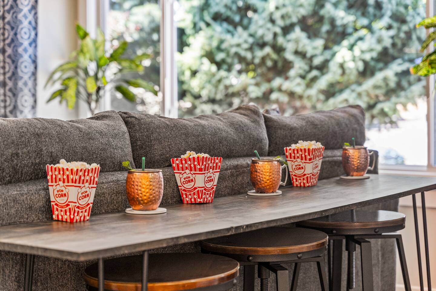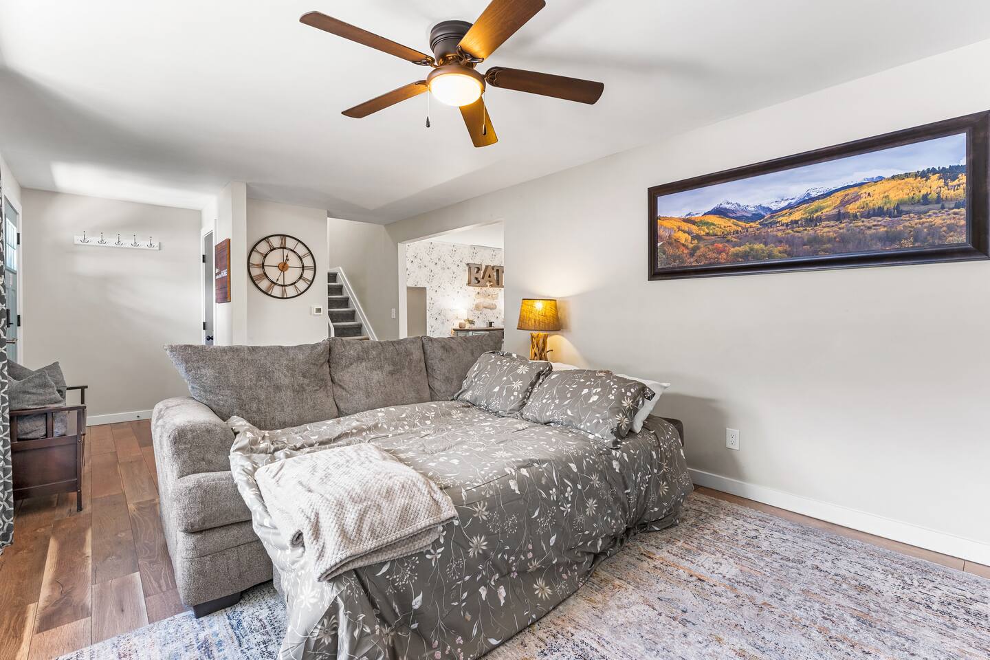 Welcome to The Rocky Mountain Retreat. We wanted our house to feel like home: Comfortable beds, plenty of towels, tp, & toiletries. The kitchen is fully stocked: spices, oil, ketchup, coffee/creamer, dishes and even outdoor cups for the hot tub or a competitive game of cornhole. All TV's are smart TV's. If you want to use your personal Hulu or Disney+ accounts feel free (just be sure to log out when you leave). MAIN LIVING ROOM: 55in Roku TV Full Sofa set -Ottoman can be added for sleeping (bedding provided) Board games KITCHEN/DINING: Condiments, Spices, and Cooking Oils. Stainless Steel Appliances Crock pots, serving dishes, small appliances etc. Keurig Machine, Drip Coffee Machine, & Tea DEN (2nd Living Room): 55 in Roku TV Sectional couch with chaise & 2 recliners *air mattress can be used in this room SUNROOM: Roku TV Large Dining Table - seats 8 MASTER BEDROOM: King size bed Smart TV Dedicated Workspace Ensuite bathroom with dual vanity Queen air mattress & bedding Pack and play crib & bedding SECOND BEDROOM: 2 Double Beds Ensuite bathroom/shower Smart TV THIRD BEDROOM: Queen size bed FOURTH BEDROOM Full size daybed Twin Trundle with bedding OUTDOORS: Two Propane Fire Pits Gas Bbq Grill Corn Hole Set